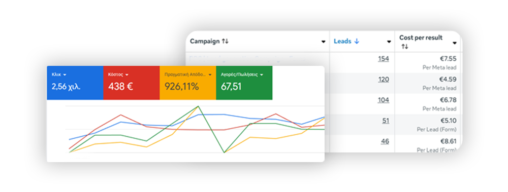 Δημιουργούμε και διαχειριζόμαστε διαφημιστικές καμπάνιες σε Google, Facebook & Instagram με στόχο την αύξηση επισκεψιμότητας και πωλήσεων.